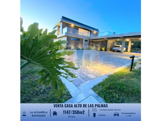 Envigado, sector La Acuarela – Alto de Las Palmas, exclusiva casa moderna de 2 niveles ubicada en unidad cerrada, ideal para familias o inversionistas que buscan valorización y calidad de vida.